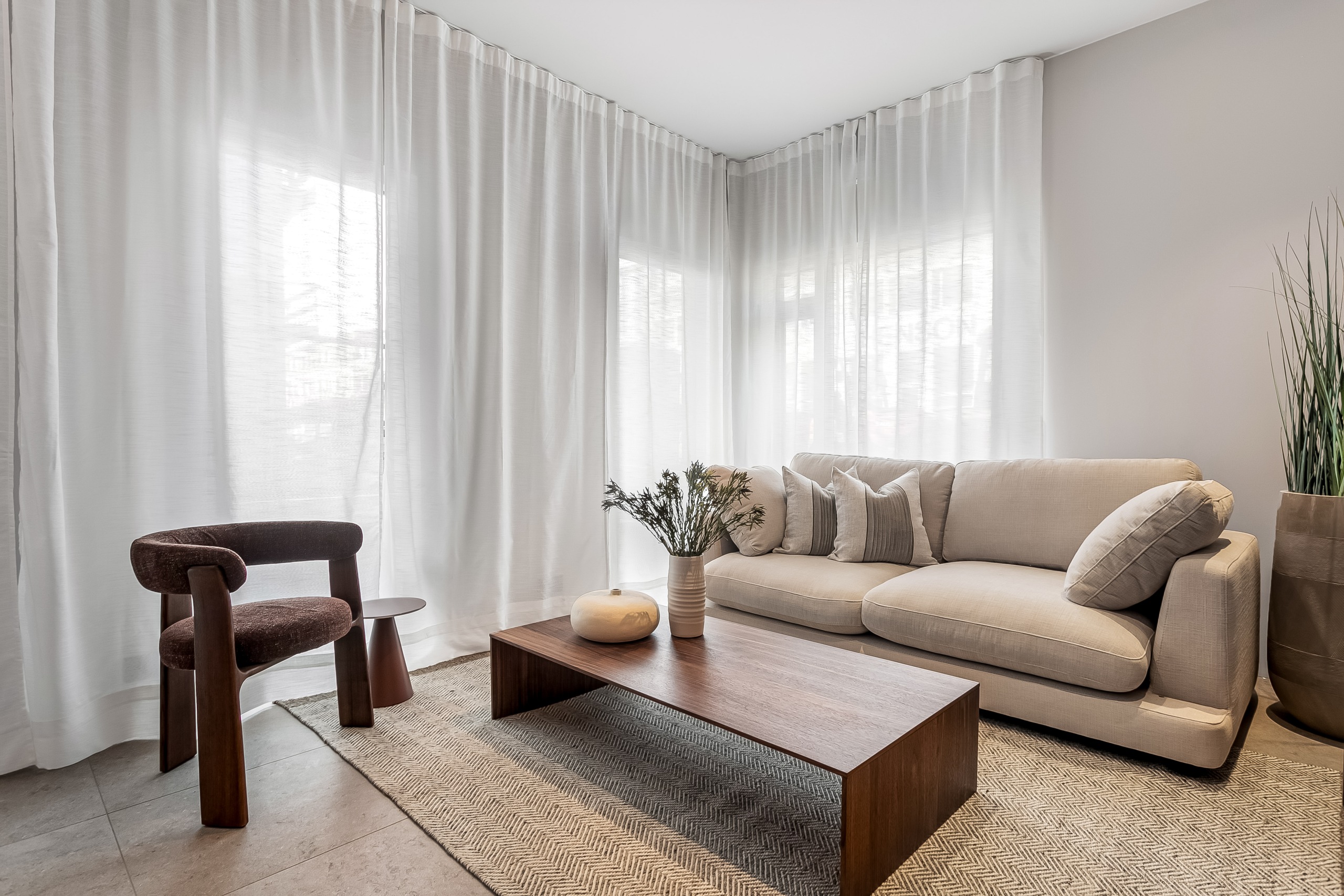 Fágun og gæði voru höfð að leiðarljósi við hönnun íbúðarinnar. Gólfsíðir gluggar eru og ná hærra til lofts sem hámarkar flæði birtu og eykur útsýni. Gólfhiti er í íbúðinni og einnig eru vélræn loftskipti sem tryggir aukin loftgæði og betri innivist.
